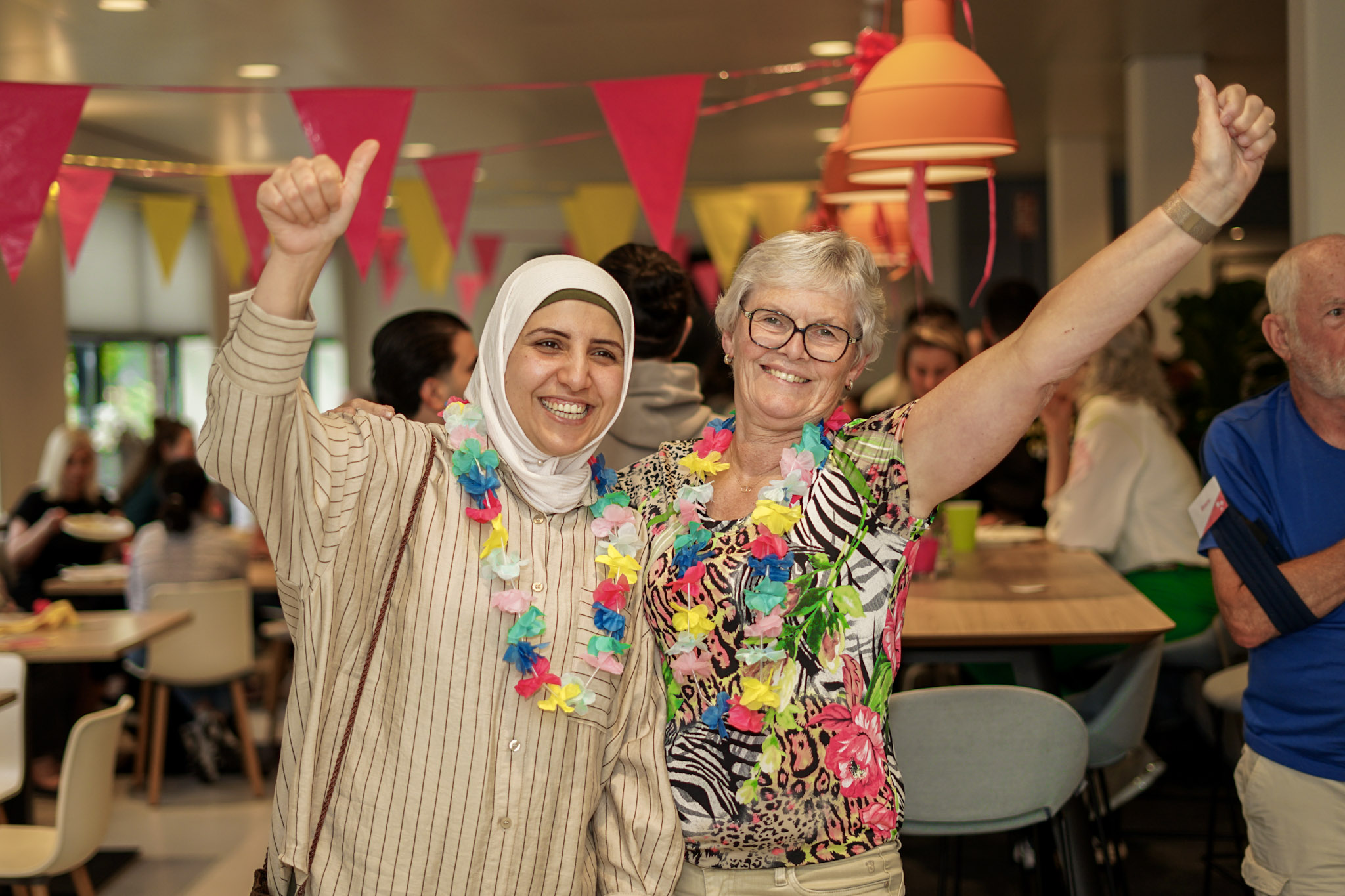 ‘De aanpak van Buddy to Buddy is luchtig en serieus tegelijk,’ merkt Jan van den Berg op. Hij werkt voor de gemeente Nijkerk als projectleider vluchtelingen. ‘Met feesthoedjes of bloemenslingers gaan alle buddy-koppels tijdens de eerste ontmoeting samen op de foto. Dankzij die lichtvoetige aanpak wordt gemakkelijk het ijs gebroken, ondanks taalbarrières en andere verschillen. Wat volgt is een avond van samen eten, praten en gebaren, lachen en dansen. Hiermee begint een traject van vier maanden samen optrekken en elkaar leren kennen.’