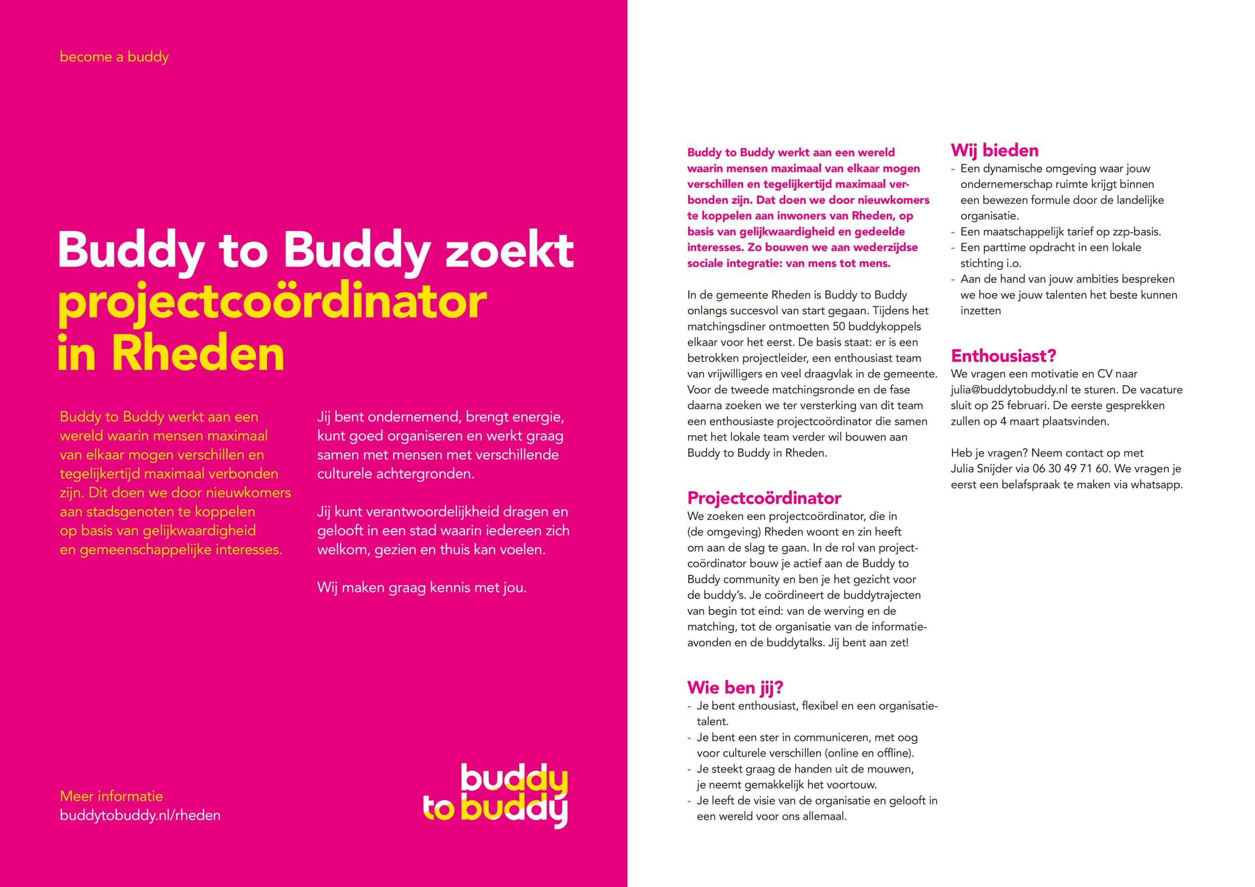 Vacature: Projectcoordinator Buddy to Buddy RhedenDownloaden Vacature: Jongerencoach Buddy to Buddy RotterdamDownloaden
